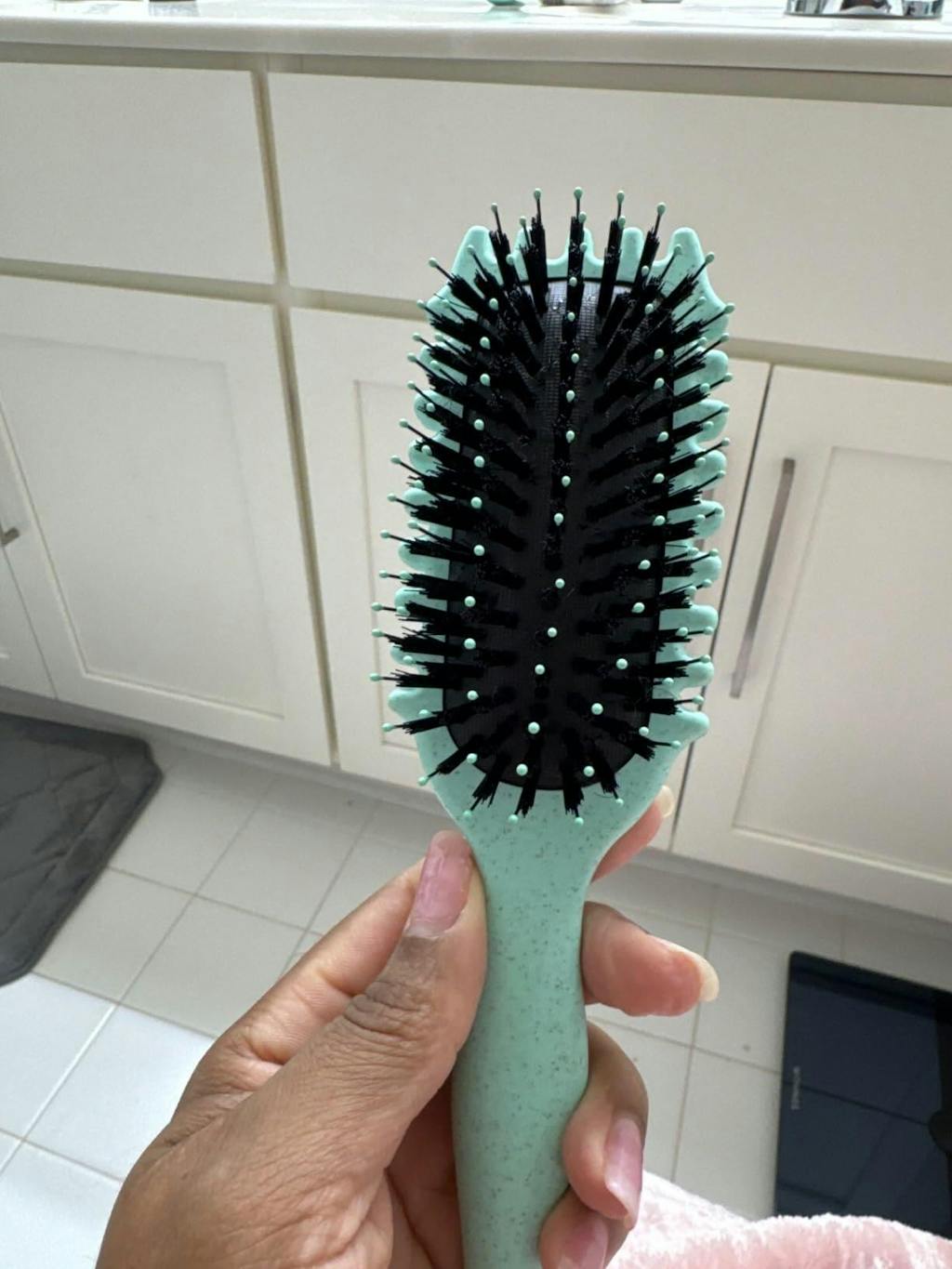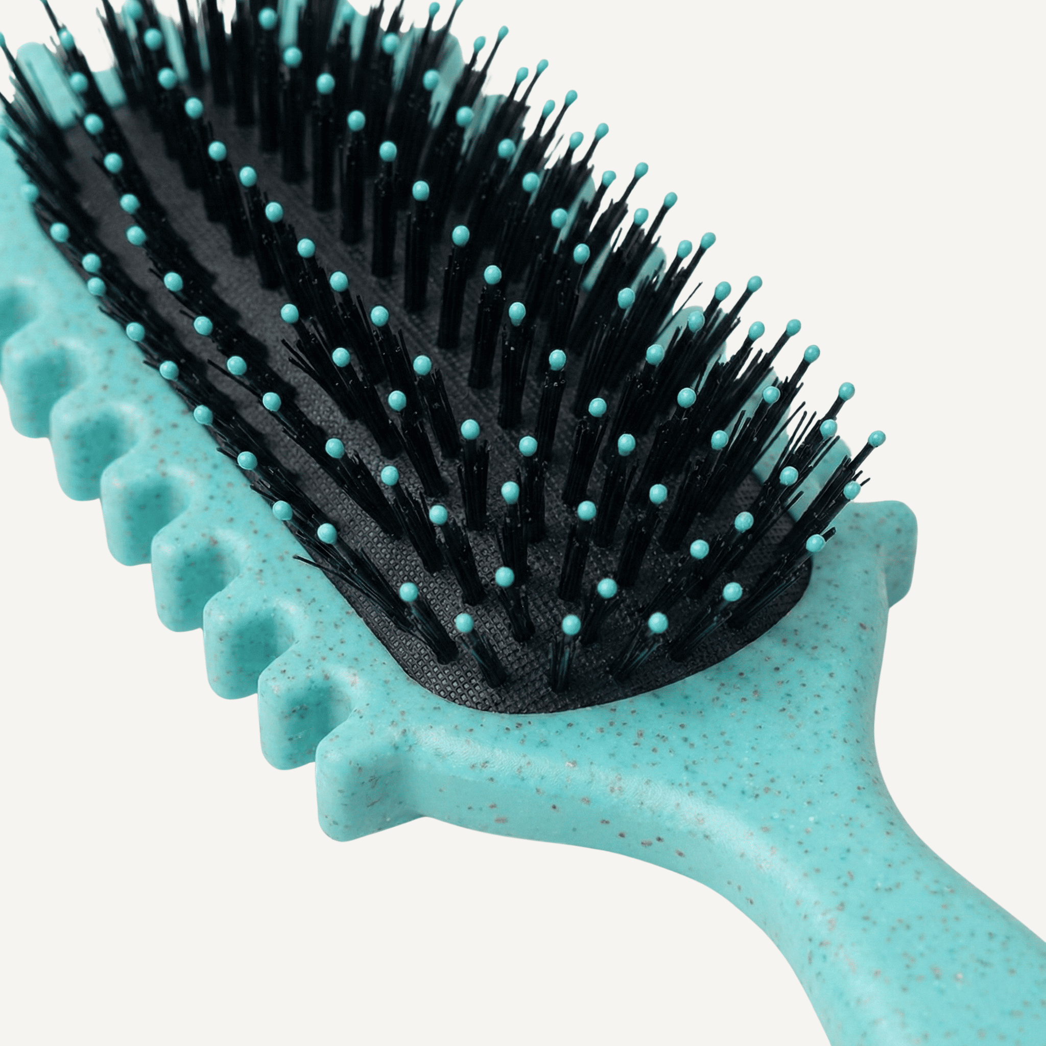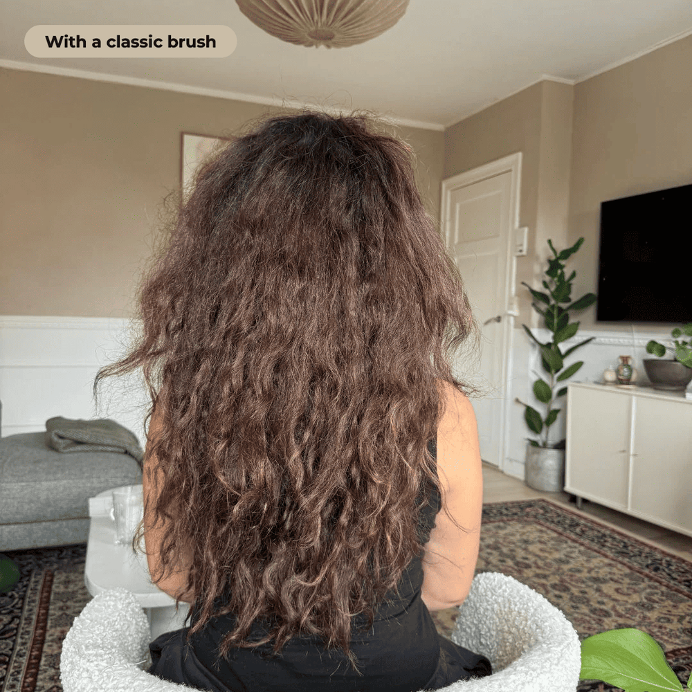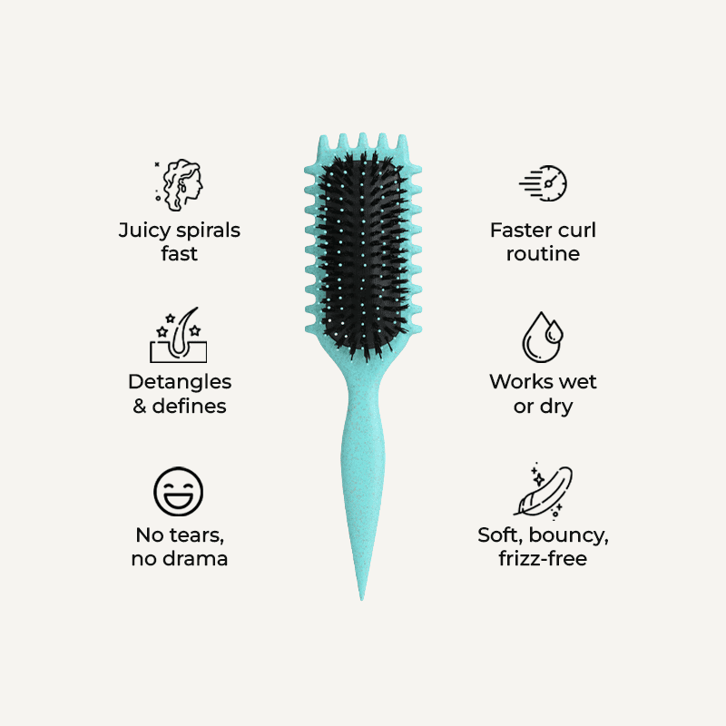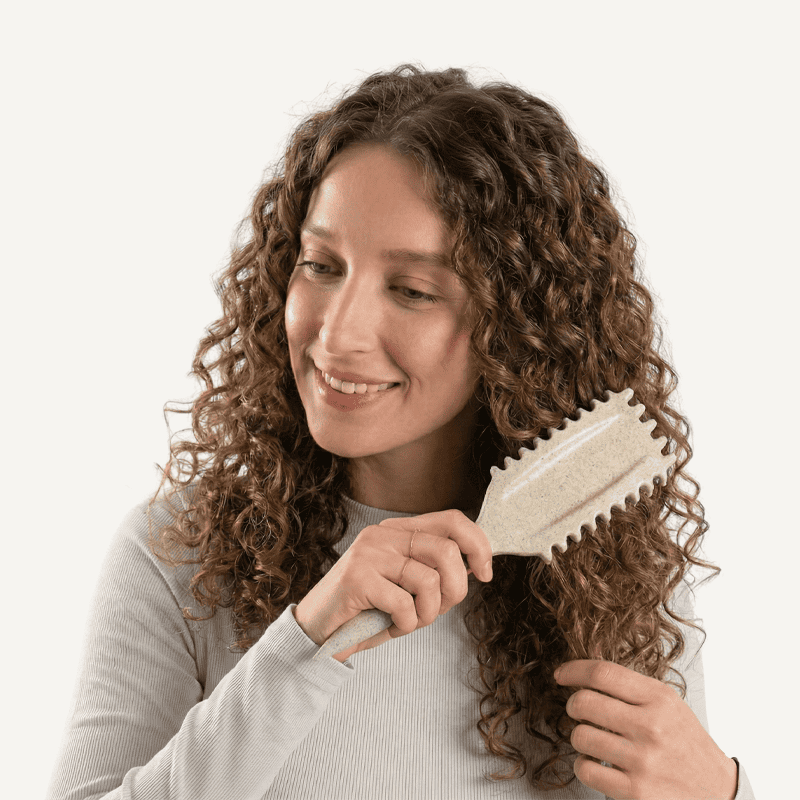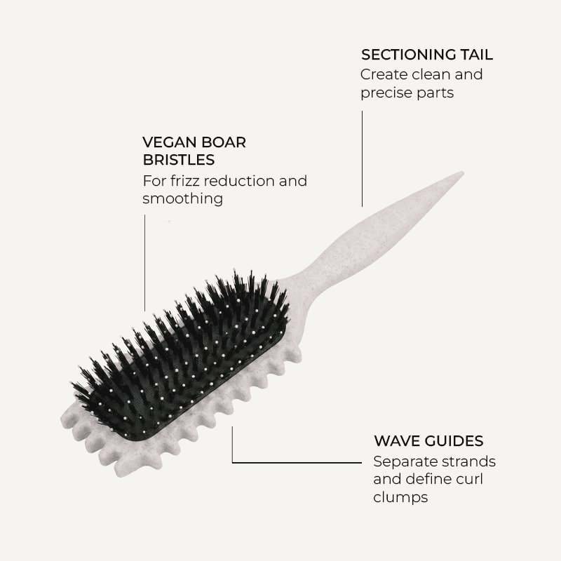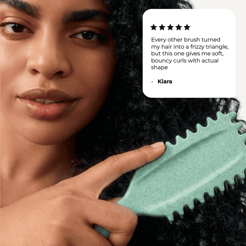 Ne – flexibilní, zaoblené štětiny jsou navrženy tak, aby klouzaly po kudrnách s menším napětím, což pomáhá snižovat lámání a krepatění při použití na mokrých nebo vlhkých vlasech s produktem.